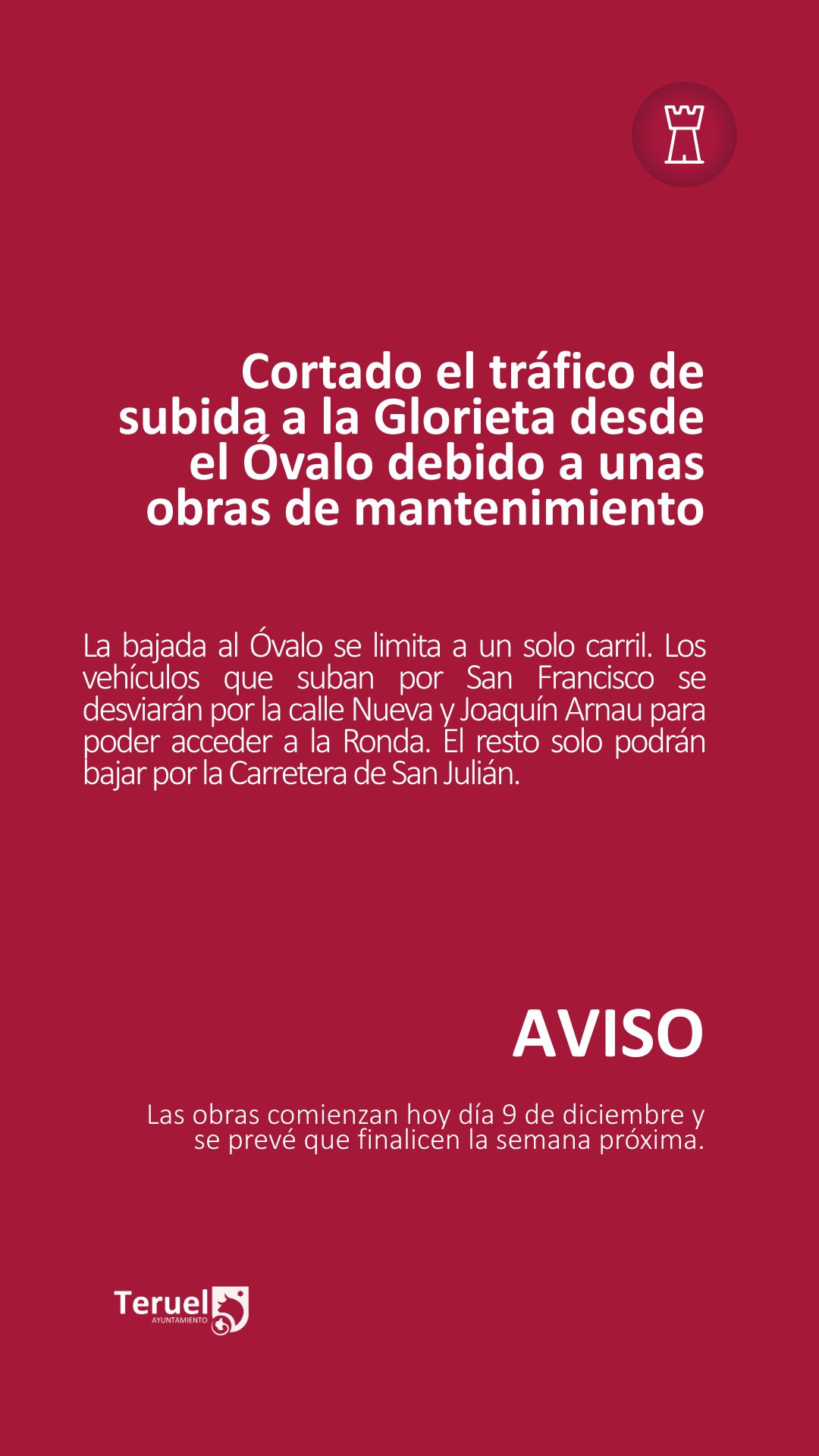 Informamos que se ha cortado el tráfico de subida a la Glorieta desde el Óvalo debido a unas obras de mantenimiento.